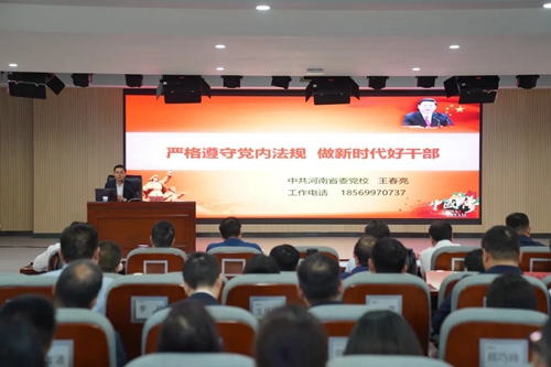 集團(tuán)黨委邀請河南省委黨校中共黨史教研部王春亮副教授,以《嚴(yán)格遵守黨內(nèi)法規(guī) 做新時代好干部》為題展開宣講。王教授分別從紀(jì)律嚴(yán)明是黨的光榮傳統(tǒng)和獨特優(yōu)勢、黨員干部嚴(yán)格遵守黨內(nèi)法規(guī)的迫切性和做嚴(yán)守黨內(nèi)法規(guī)好干部的主要著力點三個方面宣講,號召全體黨員干部要以黨紀(jì)學(xué)習(xí)教育為契機,上好黨性鍛煉“必修課”。