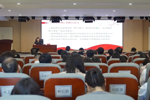 市紀(jì)委監(jiān)委駐城發(fā)集團(tuán)紀(jì)檢監(jiān)察組副組長姬小靜,以《做遵規(guī)守紀(jì)的明白人》為題,分別從《條例》的歷史沿革、修訂意義、新變化和特點等方面,逐章逐條深度解讀新修訂的《中國共產(chǎn)黨紀(jì)律處分條例》。深刻領(lǐng)悟全面從嚴(yán)治黨的實踐要求,切實學(xué)出政治忠誠、學(xué)出清正廉潔、學(xué)出擔(dān)當(dāng)作為。