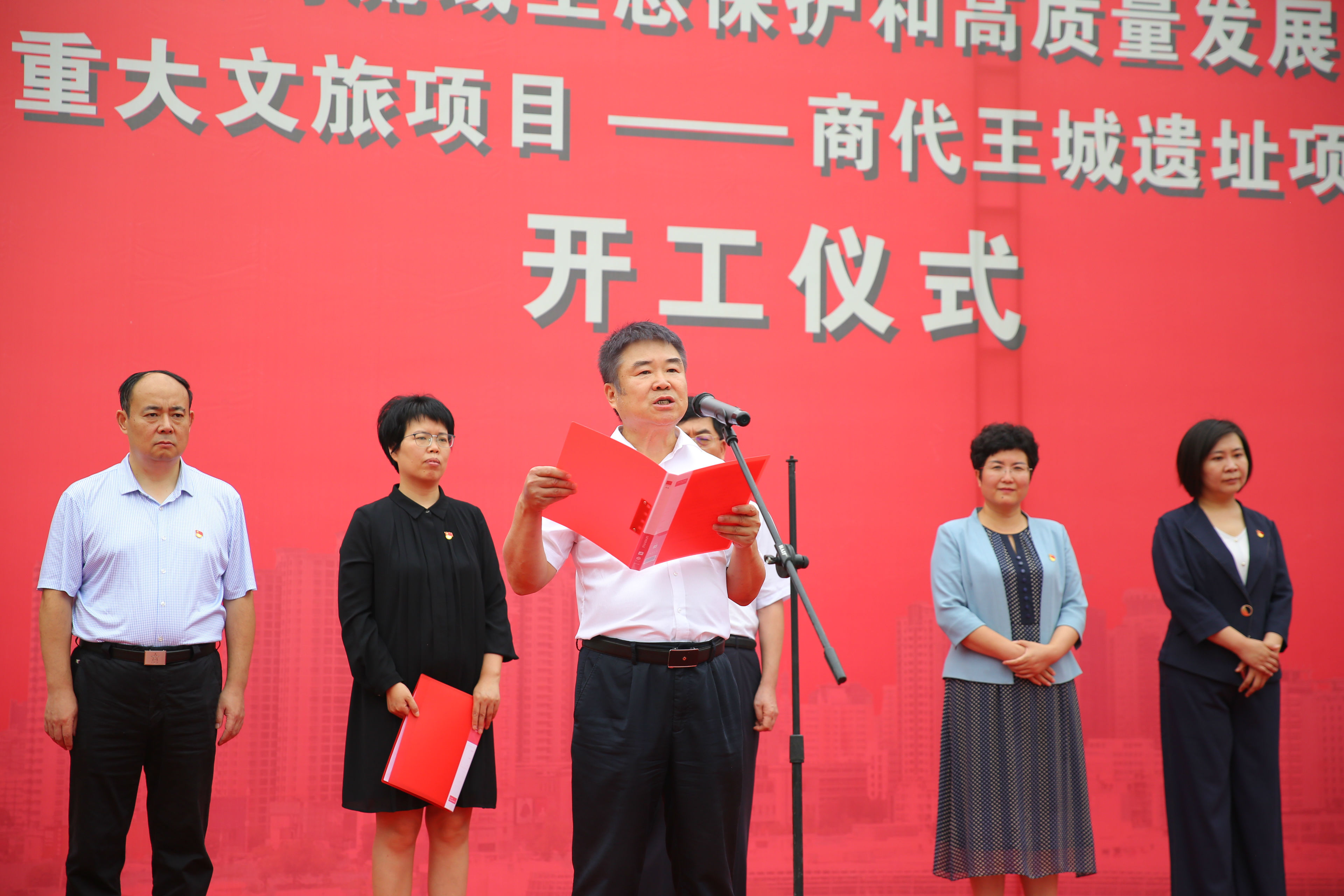 2020年7月24日上午,鄭州市建設黃河流域生態(tài)保護和高質(zhì)量發(fā)展核心示范區(qū)重大文旅項目集中開工活動——商代王城遺址項目開工儀式在亳都古巷項目現(xiàn)場舉辦。管城回族區(qū)委副書記、區(qū)長張艷敏等區(qū)委區(qū)政府領(lǐng)導出席,商都控股公司黨支部書記、董事長牛曉亮應邀參加本次活動。