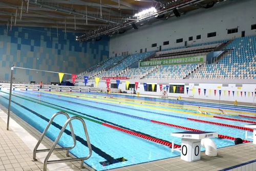 來(lái)到奧體中心游泳館