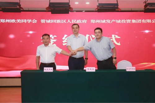 會上,管城區(qū)人民政府、鄭州歐美同學會及鄭州城發(fā)產城投資集團有限公司三方代表正式簽署了戰(zhàn)略合作協(xié)議,與會領導共同為鄭州歐美同學會海創(chuàng)中心管城分中心及青年創(chuàng)新創(chuàng)業(yè)基地進行揭牌。